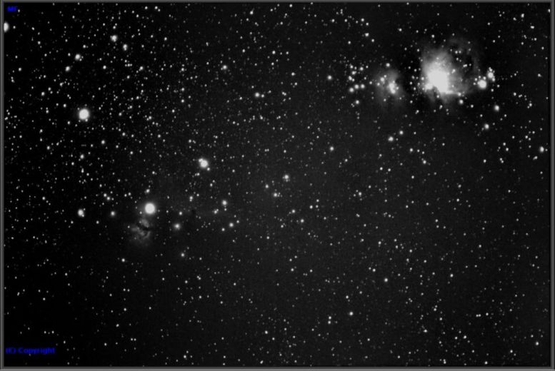 onde se pode ver a M42 + M43 + "Running Man" + Flame + "Horsehead" .