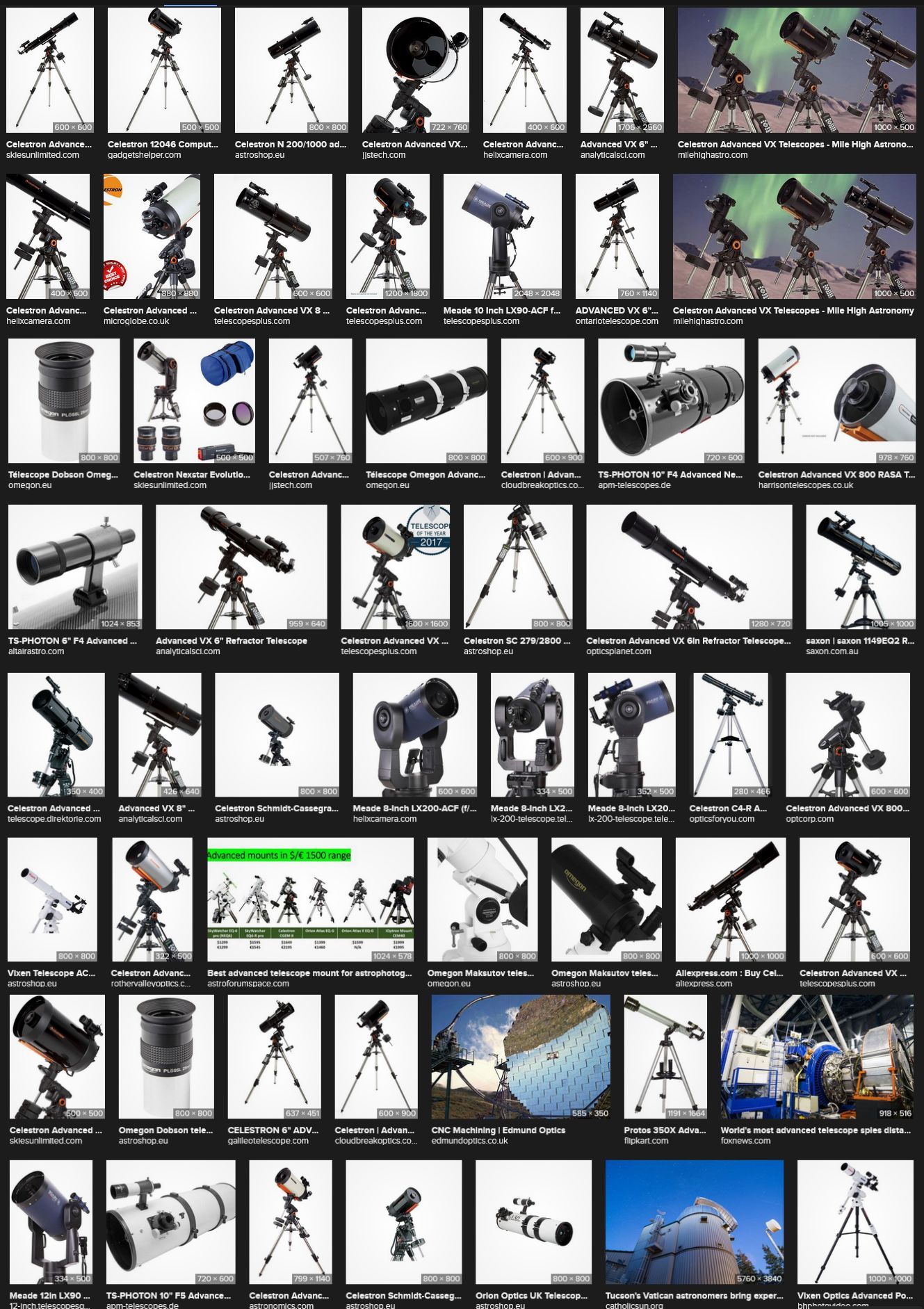 Conjunto do telescópio, cujo OTA, tenha um diametro entre 90 e 140